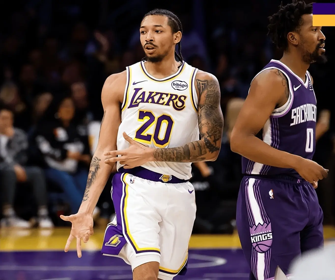 结果史密斯用实际表现打了所有质疑者的脸。第三节还剩3分钟,湖人领先优势被缩小到10分,史密斯突然爆发,先是接詹姆斯传球命中一记三分,随后又自己持球突破造犯规,两罚全中后,又在防守端抢断蒙克,反击中命中追身三分,短短2分钟内连得8分,直接把分差拉到16分。