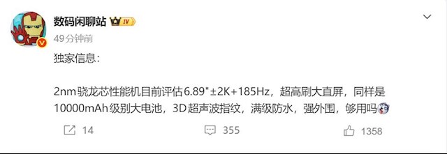 在屏幕配置上,新机预计采用6.89英寸2K超高刷直屏,并支持惊人的185Hz刷新率。此外,它还将配备先进的3D超声波屏幕指纹技术,并提供最高等级的防水保护。